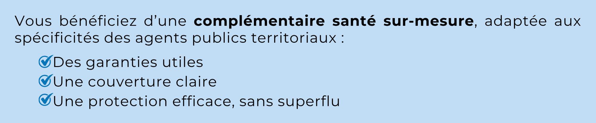 Parce qu’en tant que fonctionnaire territorial, les garanties proposées doivent répondre à des normes élevées de qualité et de protection, la Mutuelle des Pays de Vilaine vous propose une offre labellisée qui s’adapte à votre situation.